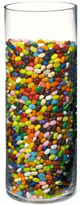 Bueno , pues sin mas datos , los dulces son judias de caramelo ( así ya teneis la referencia del tamaño) , y la jarra es un cilindro tal como se aprecia en la imagen.