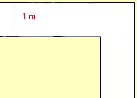 Tenemos un pasillo de 1 metro de anchura interior en el que hay un giro de 90º tal como se ve en la figura de arriba.