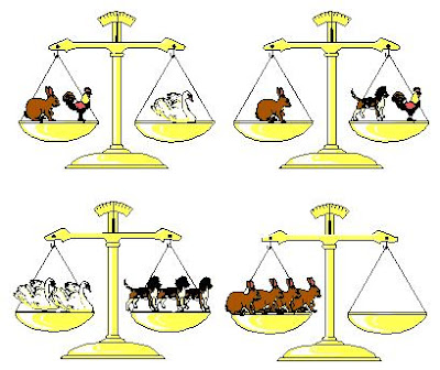 1 conejo es igual a un perro y una gallina. osea que 4 conejos va a ser igual a 4 perros y 4 gallinas.