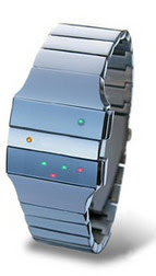 En la imagen de arriba se ve el mismo reloj marcando 3 horas distintas con leds luminosos ( los colores son irrelevantes , solo importa si estan encendidos , los que seven , o apagados , no se ve nada)