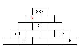 La suma de 2 cuadros adyacentes da como resultado el numero del cuadro de arriba.