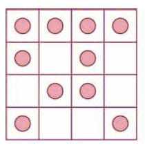 Traza diez líneas rectas de “tipo par” sobre las fichas que se colocaron en esta cuadrícula (una “línea par” será aquella que pase sobre un número par de fichas). Las líneas que se tracen pueden ser horizontales,