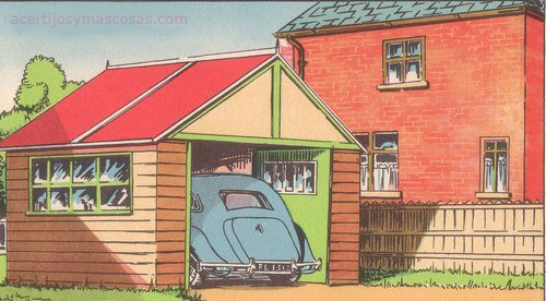sinceramente creo ke eso no es un garaje, mas bien parece una caseta para guardar herramientas y demas, que se ha «modelado» con el coche dentro, porque mucha pinta de garaje no tiene, mas bien creo ke el sol parcee qu da en el coche, pero segun el juego de sombras pintadas en la verja de la casa no deberia de ser asi, eso es lo que pienso yo vamos
