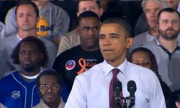 [spoiler]No sé si se referirá a la camiseta de uno de los asistentes que hay detrás de Obama. Se crea una ilusión, como si tuviera en su hombro derecho un pelo rizado enorme.[/spoiler]