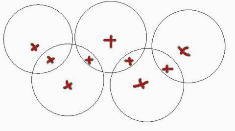 Anillos olímpicos Ahora que se acercan los juegos olímpicos , empieza con este puzzle. Coloca los dígitos del 1 al 9 en los lugares marcados con una cruz , para que la suma en el interior de cada anillo principal sea la misma.