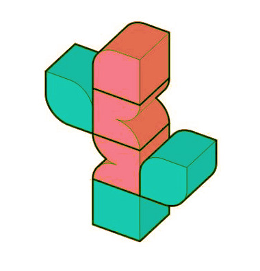 Calculando volumenes La figura de arriba está compuesta de 6 bloques. ¿Qué es mayor , el volumen total de los bloques rojos o el de los azules?