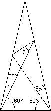 10. RaiderDK tenias razon lo he calculado y no me salia porque al sumar 20+30 me daba una diferencia de 120 cuando es de 130, por tanto el angulo es de 80º y a =30º, gracias