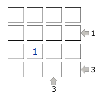 El número al final de una fila o columna indica el numero de edificios que son visibles desde ese punto.