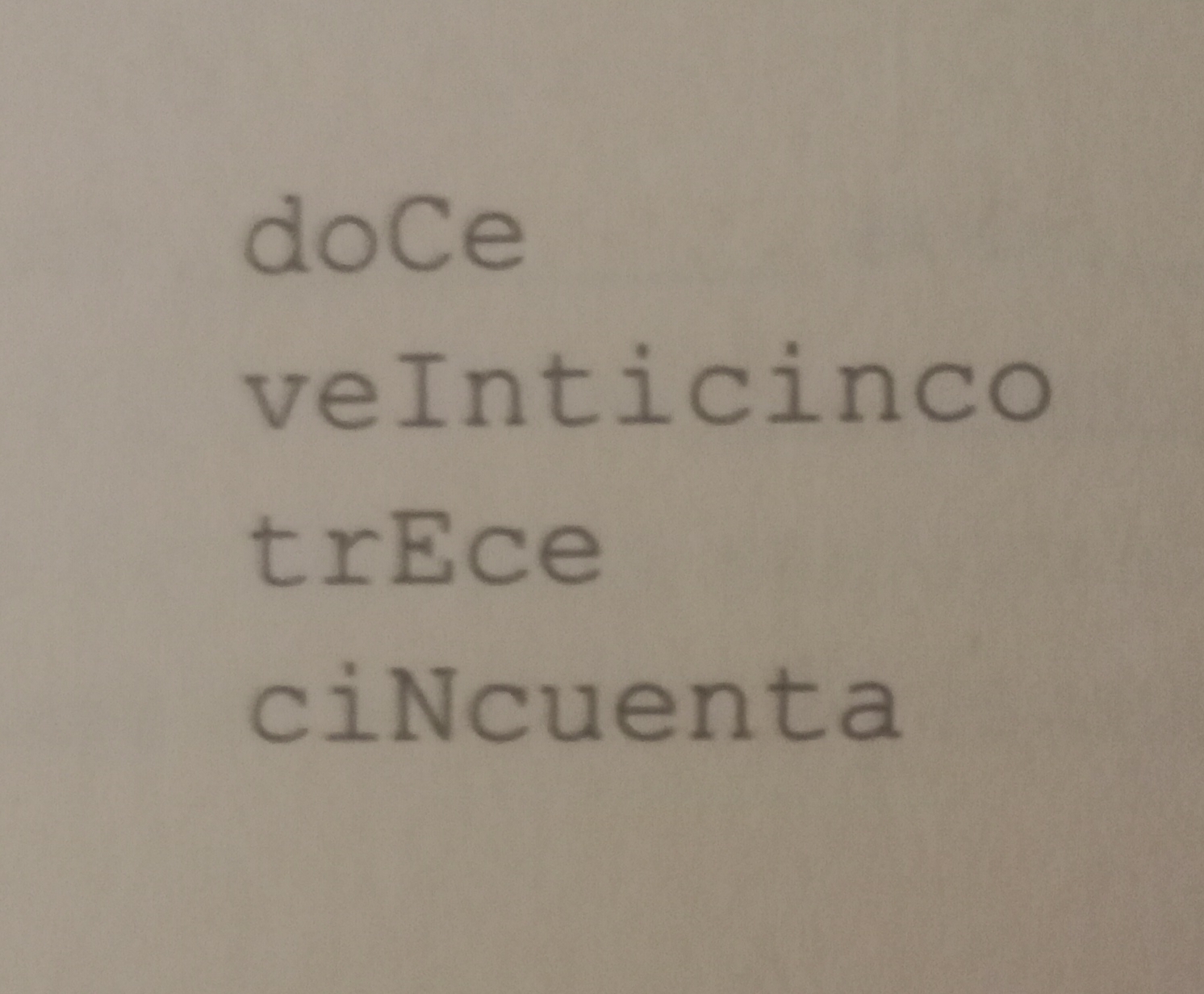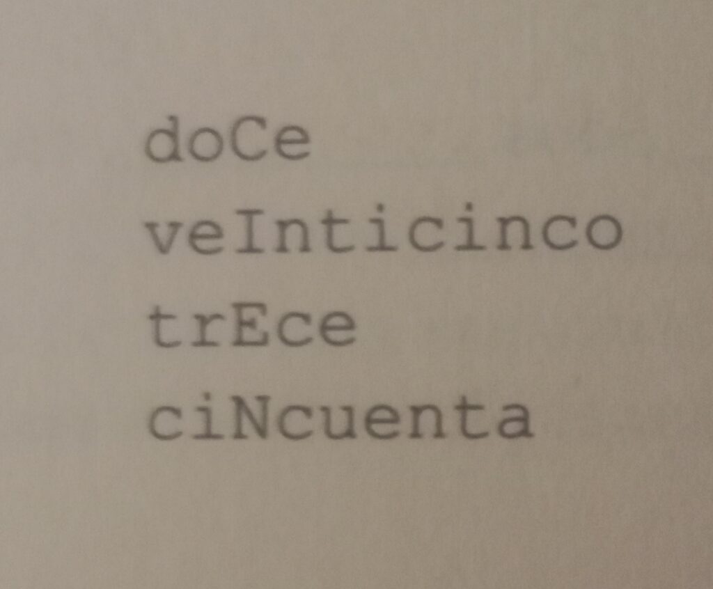 «CIEN» se lee en vertical en la siguiente lista de números que suman justamente 100. Intenta formar un acróstico similar, dando en vertical el nombre del mayor número posible. Sólo vale usar números que se nombran con una sola palabra. Todas las horizontales deberán empezar, como aquí, en el margen izquierdo.