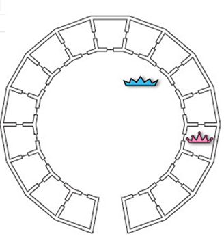 Alfaro, creo que sería más sencillo si [spoiler] comenzara por la puerta 1 o la 17, pero tocando dos días seguidas la primera vez, y luego realizando el barrido. Es decir, 1, 1, 2, 3, 4, … o 17, 17, 16, 15, … [/spoiler]