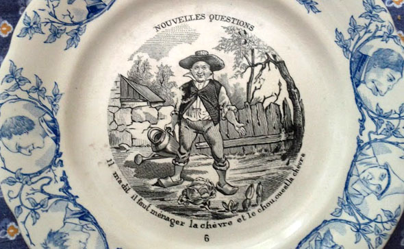 En el grabado de este plato antiguo , hay escondida una cabra.