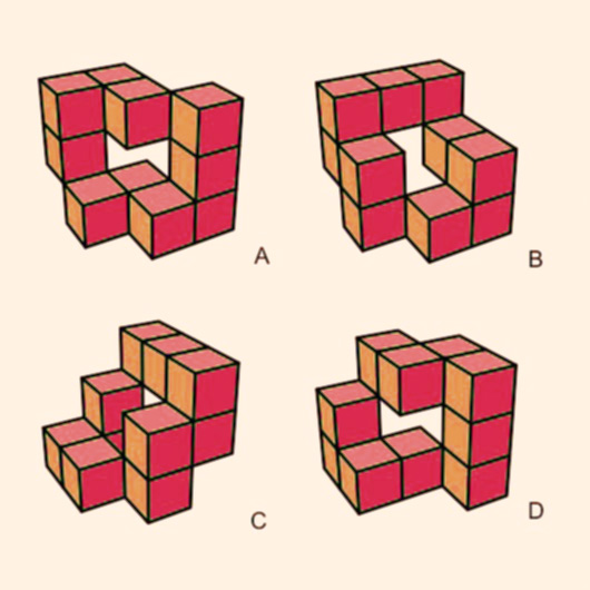 ¿Cual de las 4 figuras de arriba es distinta de las demás?