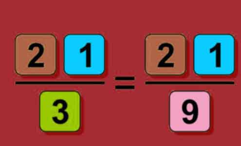 Un acertijo fácil con fracciones. Mueve un número para que la ecuación sea correcta.
