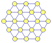 La figura de arriba muestra 19 círculos ordenados en forma de hexágono en 15 filas de longitud 3, 4 o 5.