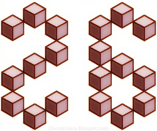 En 26veintiséis colocan esta imagen en la que se puede leer 26 en 2 dimensiones o ver los cubos en las tres dimensiones , leyéndose tambien 26 en diferentes planos.
