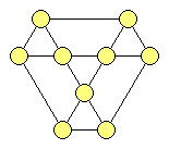 En la figura de arriba , los numeros del 1 al 9 deben ser colocados tal que  la suma de los 3 vertices de cada triángulo ( 4 pequeños y 3 más grandes) sea la misma.