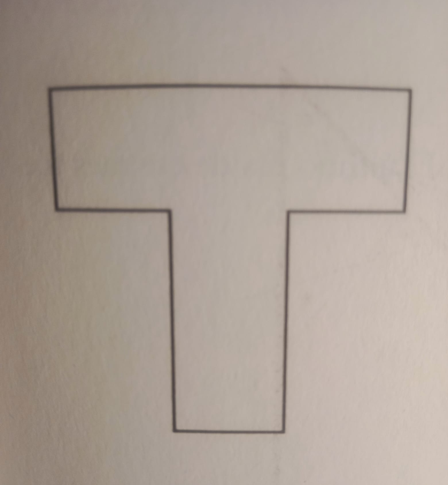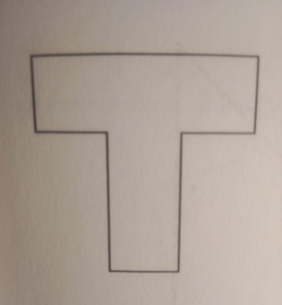 Una recta va de la esquina superior izquierda a la esquina inferior derecha (en la base de la T).
