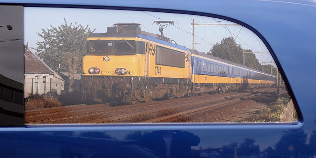 [spoiler]El tren está pintado en la ventana del coche, o es un parasol o similar con la foto de un tren… Por eso «van a la misma velocidad» ;-P[/spoiler]