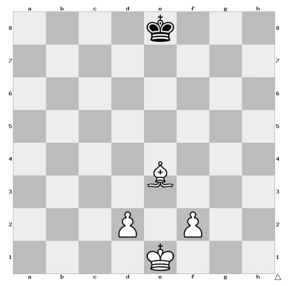 Si sabes que la partida de arriba ha sido monocromática, es decir, ninguna pieza se ha movido de una casilla negra a una blanca o viceversa, ¿cuál es la posición correcta del alfil: e3 o e4?