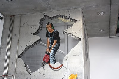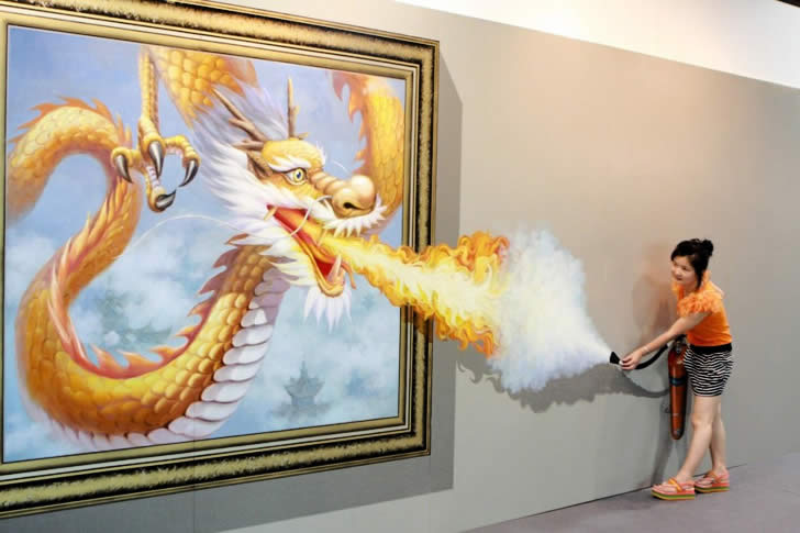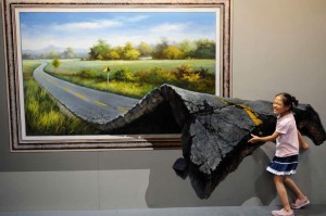 Artistas coreanos presentan una coleccion de pinturas anamórficas en el “2012 Magic Art Special Exhibition,” expuesto en Hangzhou Peace International Exhibition & Conference Center en China.