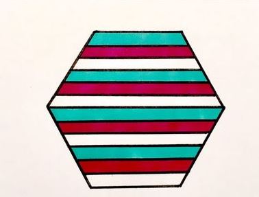 El hexágono de abajo es más ¿rojo , azul o blanco?