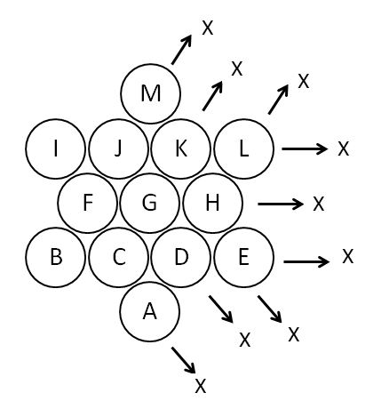 Los valores de cada área son: 5, 6, 7, 8, 9, 10, 11, 12 y 13.