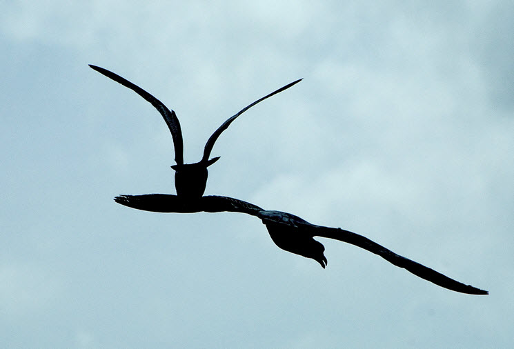 Espero que esta no sea la trampa, pero… [spoiler]Luego de pensar bastante en las posibilidades de 1/3 a 2/3, incluso la de 50% que me parecía mas razonable, le he hecho la pregunta a mi novia, quien me dijo… 100% de que sea cuervo o gaviota, no?… y bueno, en realidad si lo leo bienm tiene sentido.[/spoiler]